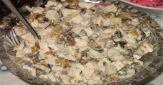 უგემრიელესი სალათა შემწვარი სოკოთი, ხახვით, სტაფილოთი და კვერცხით, მაიონეზის გარეშე.
