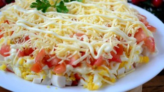 კრაბის ფენოვანი სალათა სადღესასწაულო სუფრისთვის