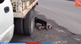 ძაღლი ცდილობს გააცოცხლოს მისი დაღუპული მეგობარი