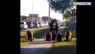 სამ მკერდიანი ქალბატონი ქუჩაში 4 კაცს ასეირნებს (ვიდეო)..