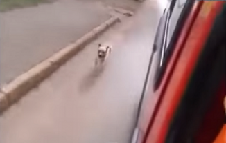 ძაღლი მისდევს სასწრაფოს მანქანას, რომელითაც მისი უსახლკარო პატრონი გადაჰყავთ საავადმყოფოში