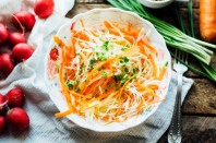 - შეაერთეთ სალათის ინგრედიენტები და მოასხით სოუსი.