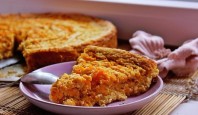 5. მიღებული მასა ფრთხილად დაასხით საცხობ ფორმაზე და აცხვეთ 15- 20 წუთის განმავლობაში