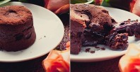 5. ხის ნიჩბით შეურიეთ გამდნარი შოკოლადი. გაავსეთ მაფინების ფორმები მიღებული მასით და მოათავსეთ გახურებულ ღუმელში 30 წუთით.