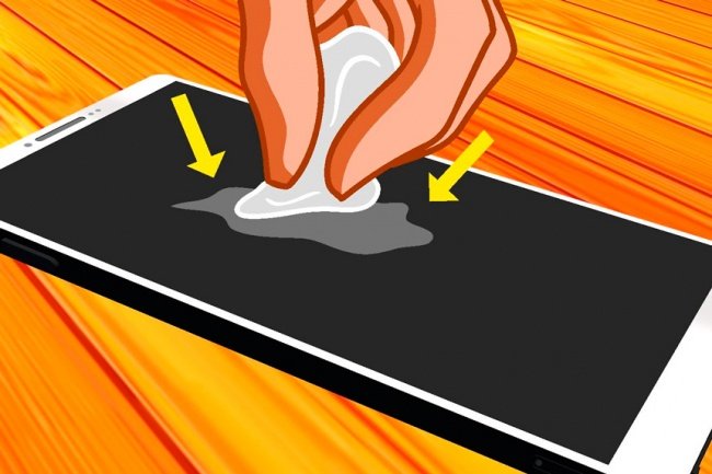 პროცედურის დროს გამორთეთ სმარტფონი და დააწებეთ სკოჩი ყველა ღილაკებზე და ნასვრეტებზე. რბილ ხელსახოცზე დაასხით ცოტაოდენი საცხი და ფრთხილად წაუსვით ეკრანზე წრიული მოძრაობებით.