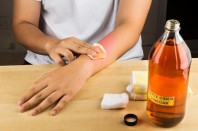 ვაშლის ძმრის გამოყენება დაკავშირებულია მის ანტისეპტიკურ ( ბაქტერიების გამანადგურებელ ) თვისებებთან და მჟავე ბუნებასთან. თუმცა დერმატოლოგიური პათოლოგიის მსგავსი მეთოდით მკურნალობისას გირჩევთ სიფრთხილე გამოიჩინოთ.