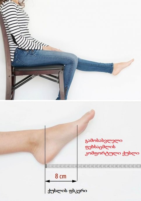 - დაჯექით სკამზე და გასწიეთ ფეხი წინ.