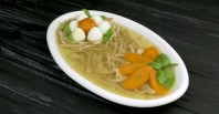 - ბულიონში დაუმატეთ სტაფილო და ნიახური. მოხარშვის შემდეგ ნუ გადაყრით მათ, არამედ გამოიყენეთ მოსართავად. ბოსტნეული შეგიძლიათ დაჭრათ ლამაზ ფიგურებად და დაუმატოთ ლაბასხმულს გამკვრვივებამდე.