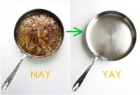 თუ ტაფა ძლიერ დაბინძურებულია, დუღლის შემდეგ მოუსვით მაგარი ღრუბელი.