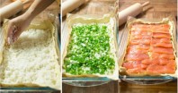- აიღეთ ღრმა ტაფა ან ქვაბი და ლავაშის ფურცლები ისე ჩააფინეთ, როგორც ფოტოზეა ნაჩვენები.