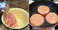 - ქათმის ფილე დაჭერით კუბიკებად, დაამატეთ ხახვიანი ხორცი და სოკო, მოურიეთ. დაუმატეთ ნაღები და სანელებლები შუშეთ 15 წუთი, და გადადგით გვერდზე