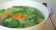 - წყლის დასხმამდე ოსპი ბოსტნეულთან ერთად ოდნავ შეწვით. დაე, წვნიანი 10-15 წუთით სუსტ ცეცხლზე ადუღდეს.