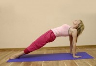 2. დაიკავეთ ისეთი პოზიცია, როგორიც სურათზეა ნაჩვენები. მაქსიმალურად დაატანეთ ძალა ხელეფსა და ფეხებს ისე, რომ წელი გაასწოროთ და არ ჩააგდოთ. თავი და მხრები აუცილებლად უნდა იყოს ერთ დონეზე. შეიკავეთ თავი რამდენიმე წუთი ამ პოზიციაში და ისუნთქეთ ღმად. ეცადეთ, რომ მაქსიმალურად მოდუნდეთ და ამავდროულად არ დაეცეთ იატაკზე.